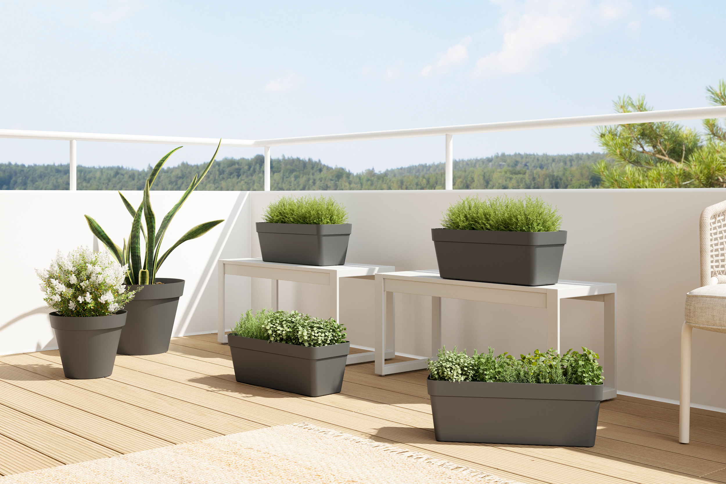 A classic that never goes out of fashion. Inspired by the natural beauty of the Italian island of Capri, this range recaptures the essence of the terracotta pots' shape, providing a perfect harmony between classic silhouettes and modern looks. The Capri range features various models and colours for all styles and contexts, from balcony and wall solutions to orchid pots and water reserve pots. It also offers various sizes, from pots for smaller plants to large and very large plants (pots up to 1 metre high). Produced using recycled material, the Capri range is a strong trend that is essential in any shop.